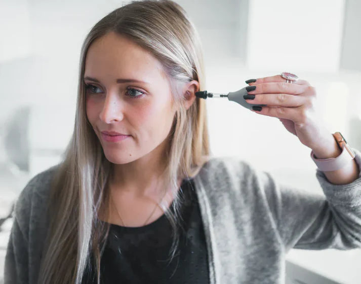 2. Insert the earbud gently into your ear until it forms a seal just past the entrance of the ear canal - similar to how you'd position an audio earbud.